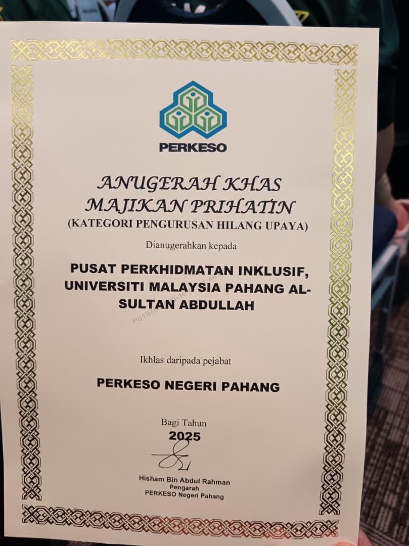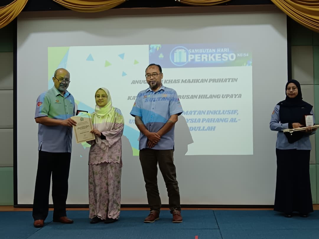 SAMBUTAN HARI PERKESO 2025 - PUSAT PERKHIDMATAN INKLUSIF MEMPEROLEHI ANUGERAH KHAS MAJIKAN PRIHATIN (KATEGORI PENGURUSAN HILANG UPAYA)
