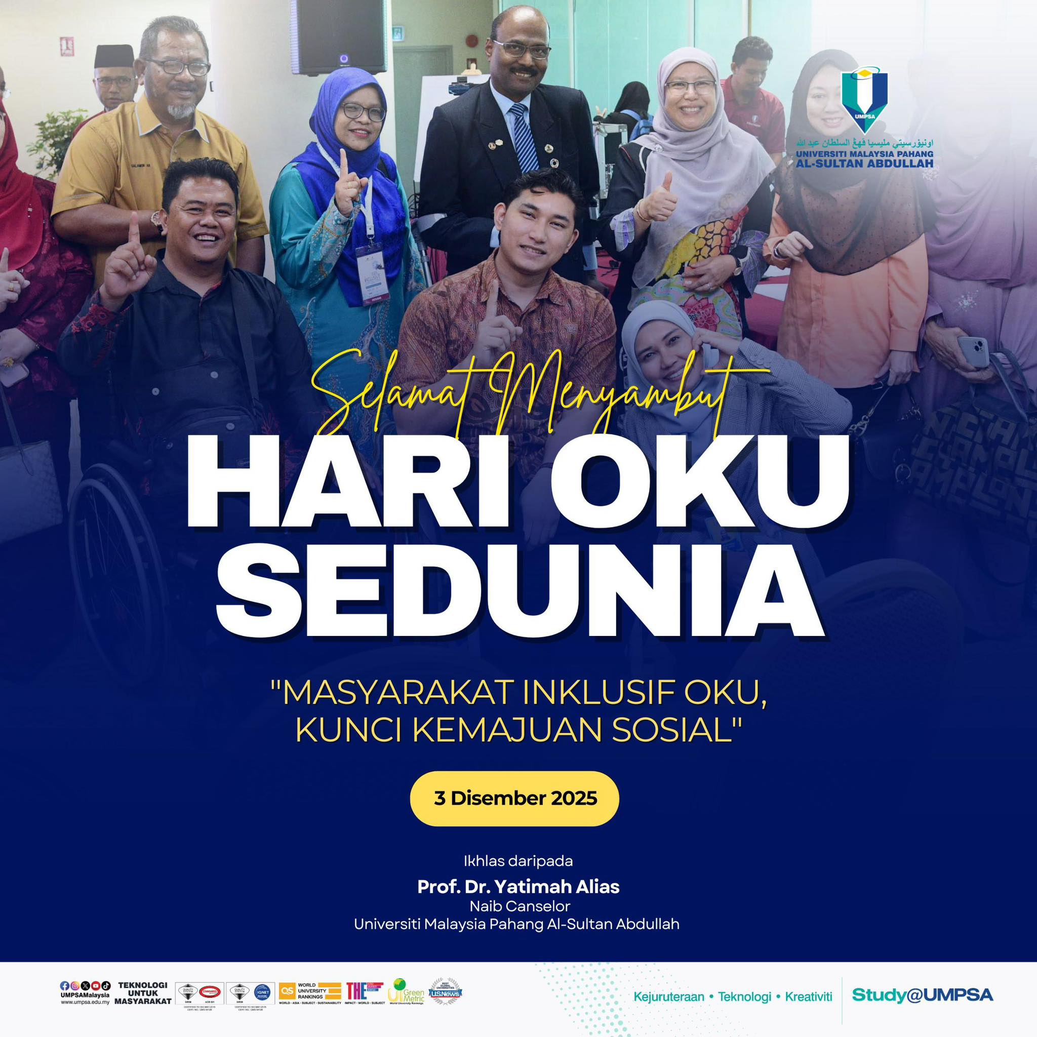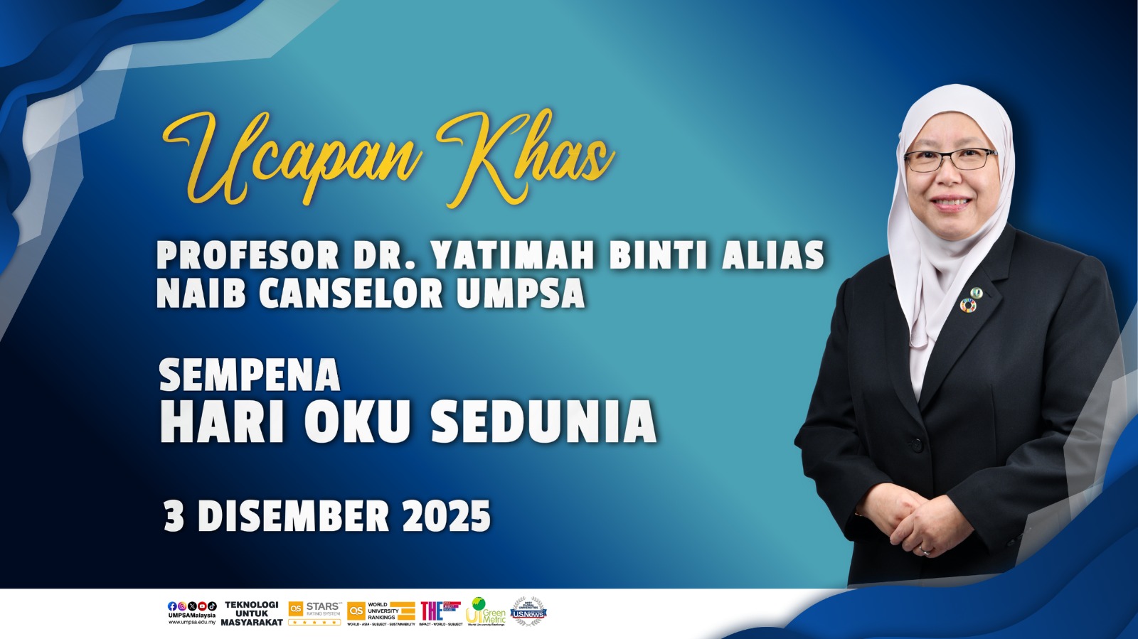 UCAPAN KHAS PROFESOR DR. YATIMAH ALIAS, NAIB CANSELOR UMPSA SEMPENA HARI OKU SEDUNIA PERINGKAT UMPSA 2025