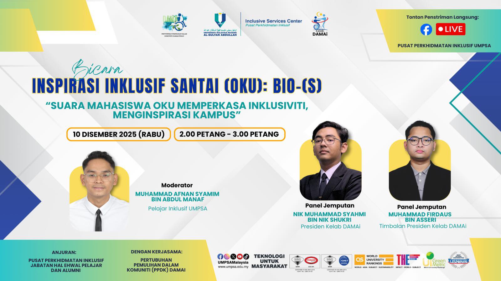 BICARA INSPIRASI INKLUSIF (OKU) SANTAI: BIO-S SEMPENA HARI OKU SEDUNIA PERINGKAT UMPSA 2025