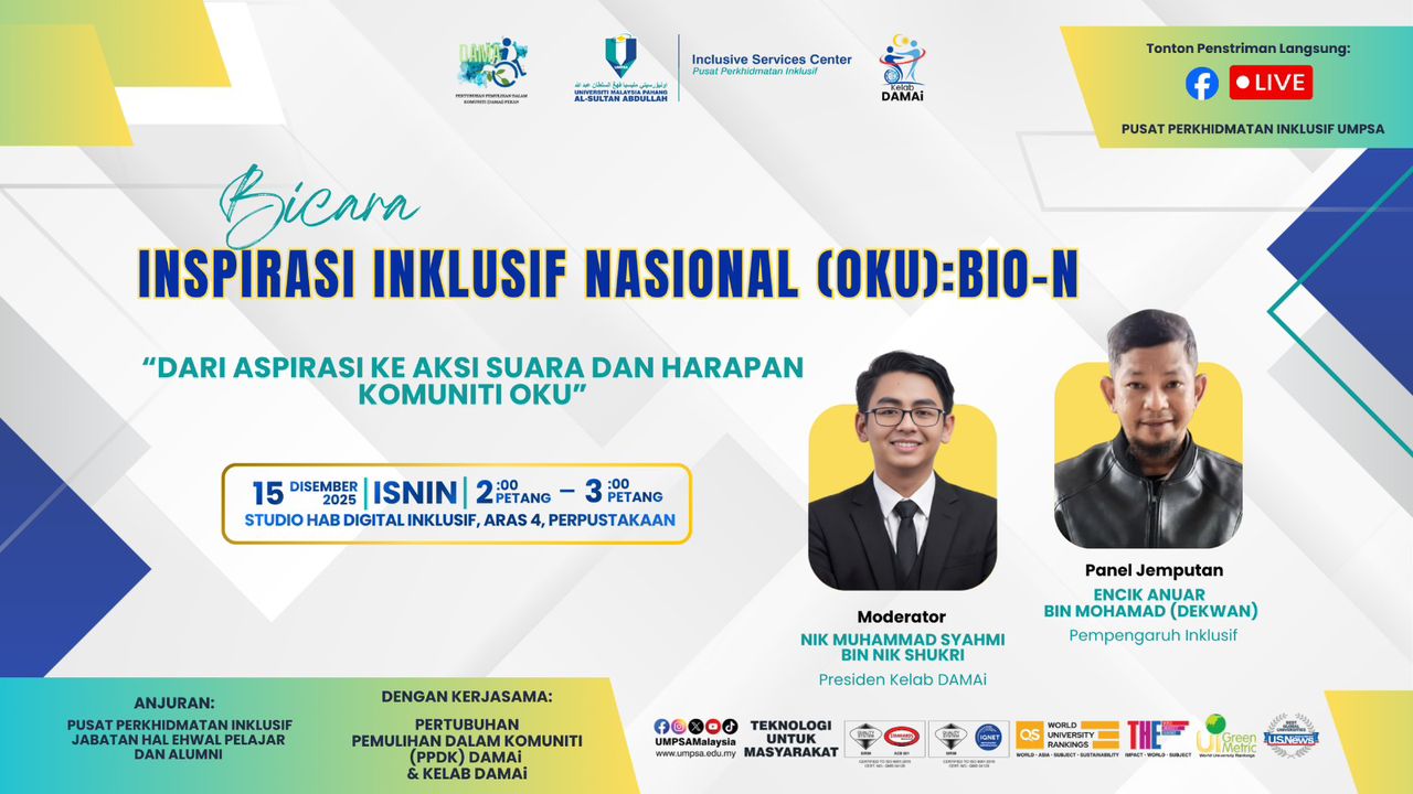 BICARA INSPIRASI INKLUSIF (OKU) NASIONAL: BIO-N SEMPENA HARI OKU SEDUNIA PERINGKAT UMPSA 2025